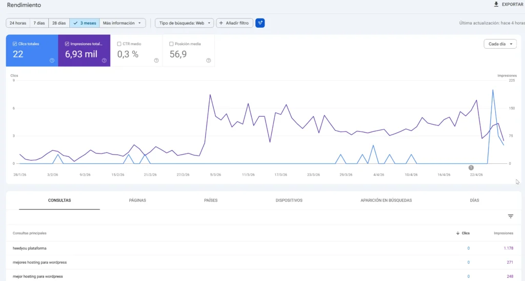 Para entender mejor esto, revisé mis datos reales en Search Console: